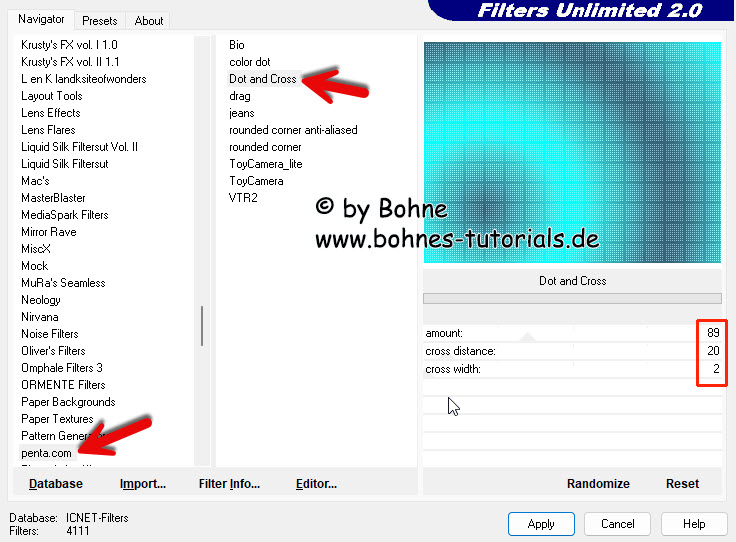 02) Filter -> penta.com – Dot and Cross, mit folgender Einstellung