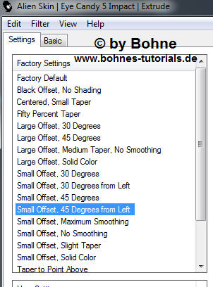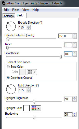 11) Filter -> Alien Skin Eye Candy 5:Impact - Extrude, mit dieser Einstellung