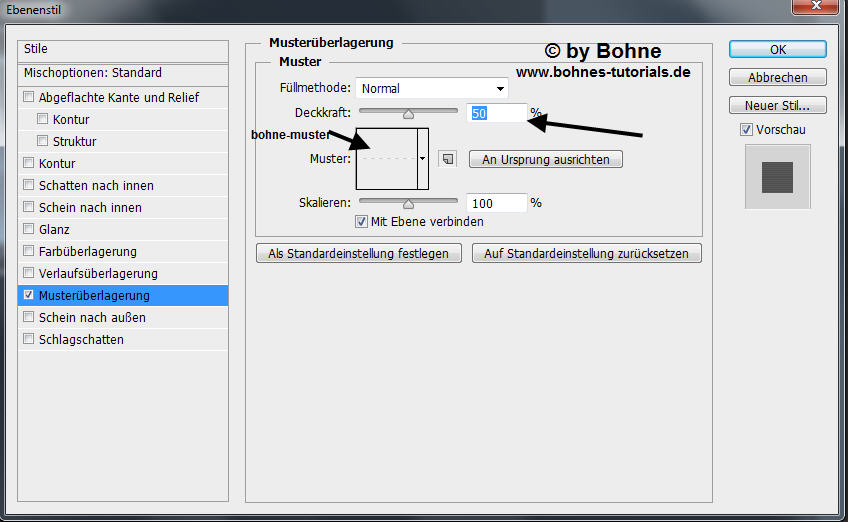 Ebenenstil hinzufügen -> Musterüberlagerung