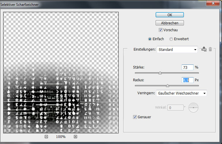 filter -> Scharfzeichnungsfilter -> Selektiver Scharfzeichner