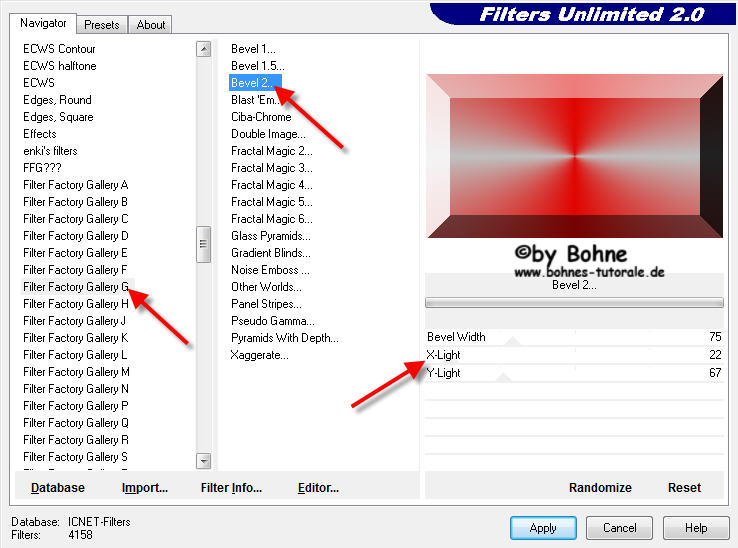 4) Effekte -> Plugins -> Filters Unlimited -> Filter Factory G -> Bevel 2