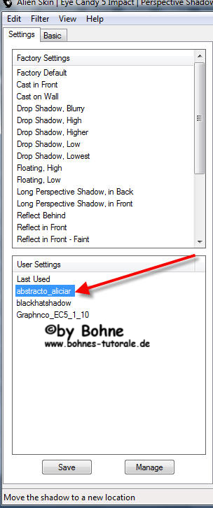 13) Effekte -> Plugins -> Eye Candy 5 Impact -> Perspective Shadow -> Voreinstellund "abstracto_aliciar"