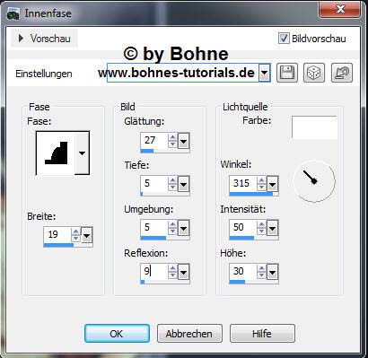 Effekte -> 3D Effekte -> Aussparung, dieses mal mit -5 bei V+H