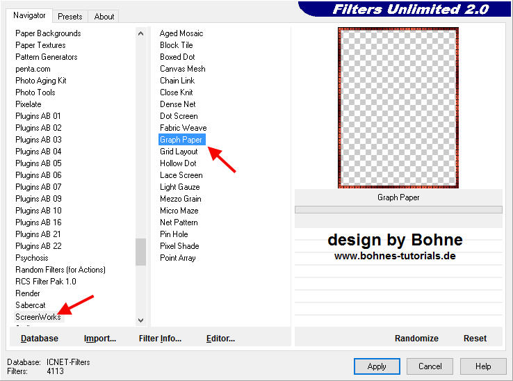 Mit Strg+F erneut den Filter ScreenWorks einfügen