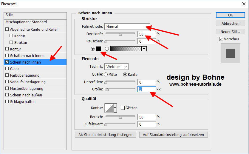 Ebenenstil Schein nach innen hinzufügen