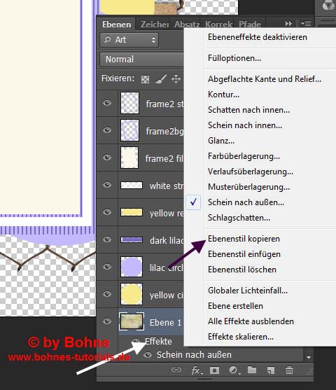mit rechtem Mausklick auf Effekte und dann auf Ebenenstil kopieren