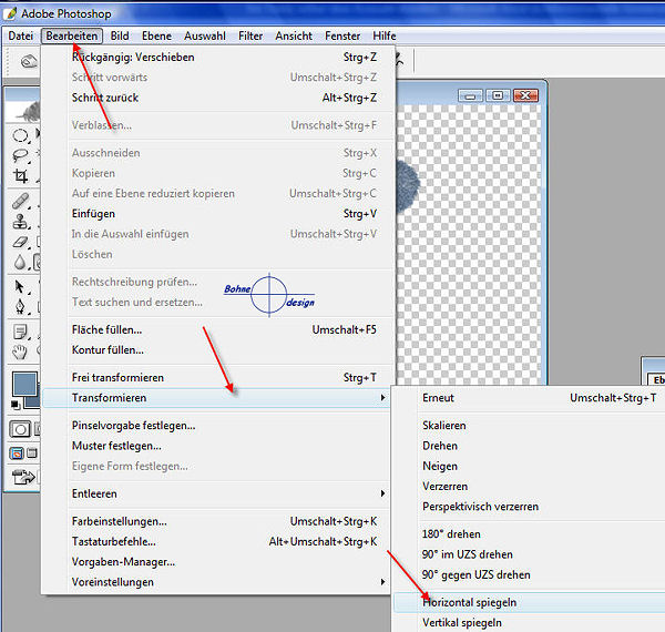 10.Bearbeiten -> Transformieren -> Horizontal spiegeln