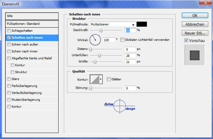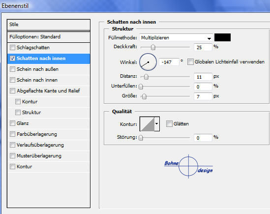 15. Ebeneneffekt hinzufügen -> Schatten nach innen