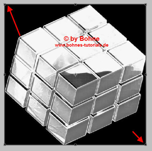 6) Aktiviere wieder Deine Würfel-Ebene und verkleinere sie über Strg+T auf 70%