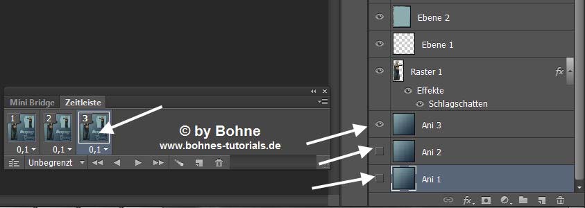 05. dupliziere die Ebene 2-mal mit Strg+J und benenne diese Ebenen "Ani 1 - Ani 3"