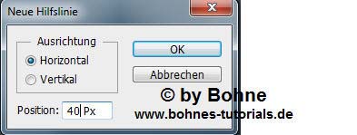 16. Ansicht -> Neue Hilfslinie -> Horizontal 40 PX und 400 PX