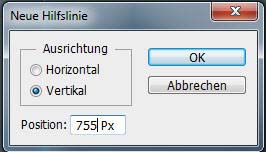 17. Ansicht -> Neue Hilfslinie -> Vertikal 485 PX un 755 PX