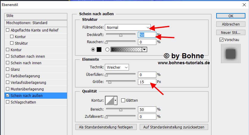 Ebenenstil hinzufügen->Schein nach außen