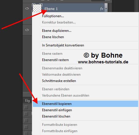 Mit rechtem Mausklick -> Ebenenstil kopieren