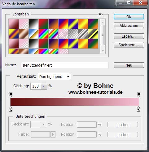 Stelle nun folgenden Farbverlauf ein