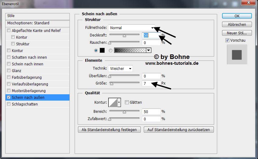 Ebenenstil hinzufügen -> Schein nach außen