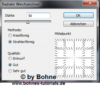 Filter -> Weichzeichnungsfilter -> Radialer Weichzeichner