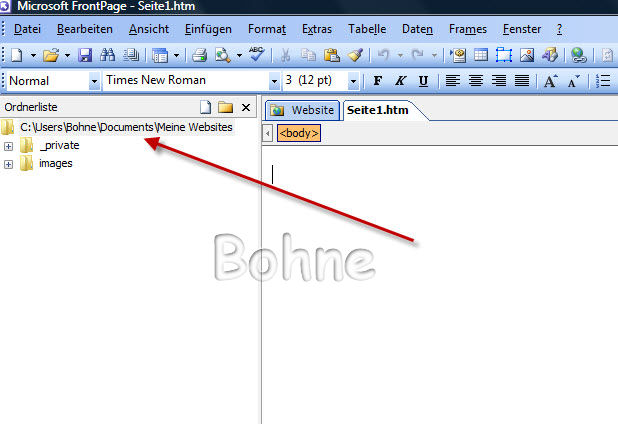 wobei es passieren kann, dass du FrontPage den Weg dorthin erst zeigen musst (je nach Version und Bertiebsystem)