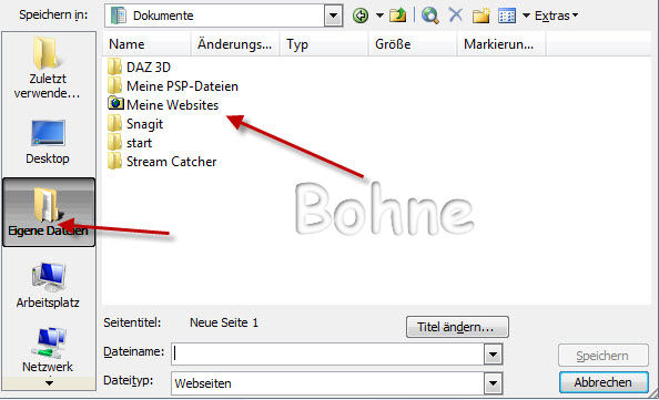 jetzt suche dir hier den Ordner "Meine Websites"von FrontPage raus