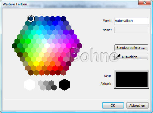 wenn Du aber eine andere Farbe möchtest als die, die dir hier zur Verfügung stehen dann klicke unter den Farbfelder auf "weitere Farben"