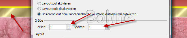 Die Tabellen Große: gibt an wieviele Zeilen und Spalten die Tabelle haben soll-> unsere besteht aus 1 Zeile und 1 Spalte