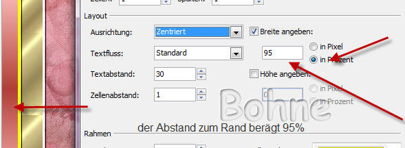 Der Textabstand: gibt an wieviel Abstand zu den Rändern eingehaklten werden sollte. Hier bei uns sind das 30 Pixel