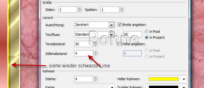 Der Zellenabstand: gibt nochmal etwas Platz zum Tabelenrand. hier bei uns ist es ein Pixel