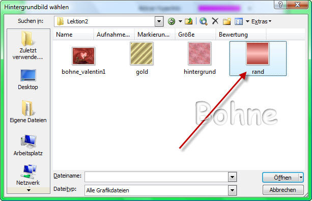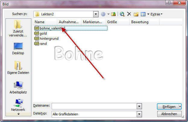 in den Ordner "Lektion2" befinden sich ja deine Grafiken, such dir die die du ganz aussen aben willst,