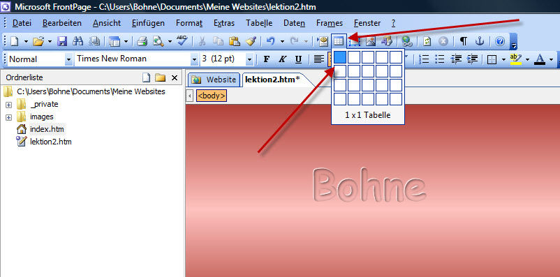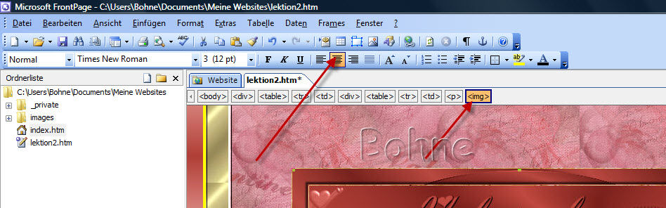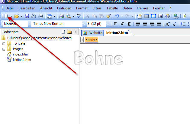 FrontPage geht sofort in seinem Ordner"Meine Webseites" wo sich der Ordner "images"