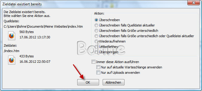 (auf deinem Server musst du alles was in deinem Ordner ist überschreiben) du musst auf die