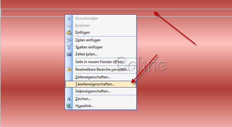 klicke wieder mit der rechten Maustaste in der neuen Tabelle und rufe das Kontexmenue "Tabelleneigenschaften" auf