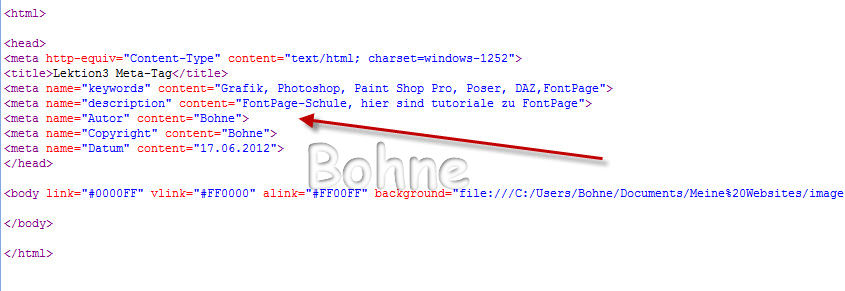 wenn du jetzt deinen Quelltext (Code) überprüfst dann hat FrontPage dein Meta-generiert