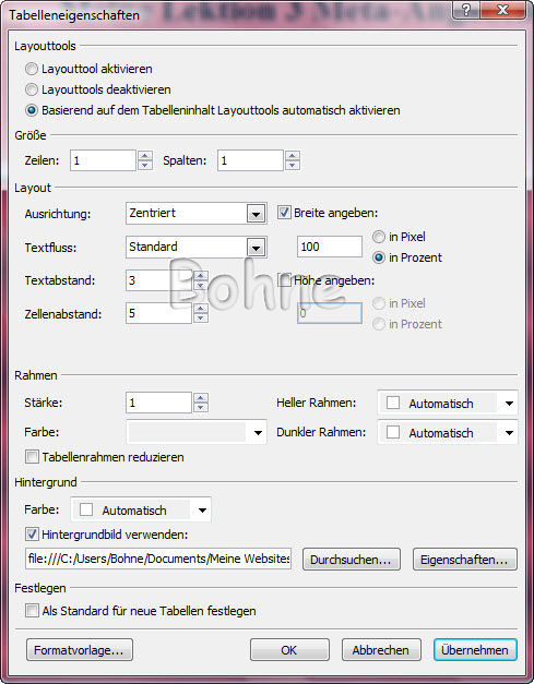 klicke wieder in der Tabellenfäche und rufe die "Tabelleneigenschaften" auf und übernehme meine Einstellungen