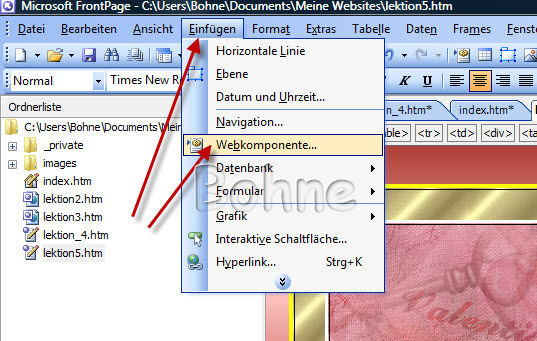 Speichere deine Seite als "Lektion5.htm" denke ddran dass du auch wieder deine index.htm änderst