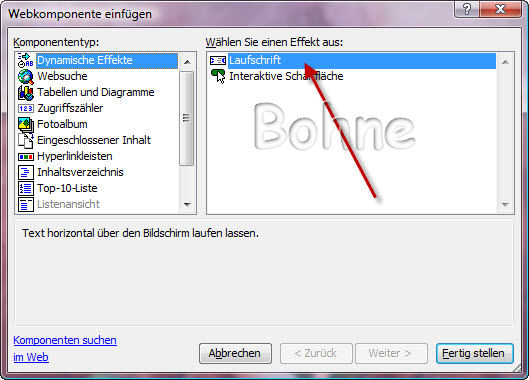 gehe oben in der Menueleiste auf "Einfügen-> Webkomponente"
