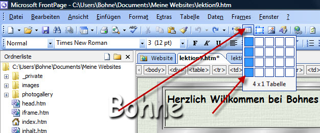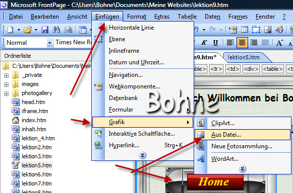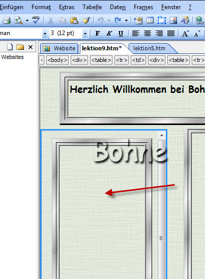 öffne deine Lektion 8 oder erstelle dir ein neues Frame-Set