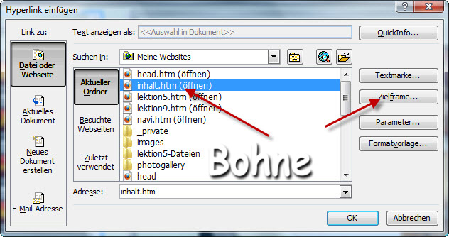 hier suchst du dir die Inhaltseite aus Lektion 8 klicke dann auf Zielframe
