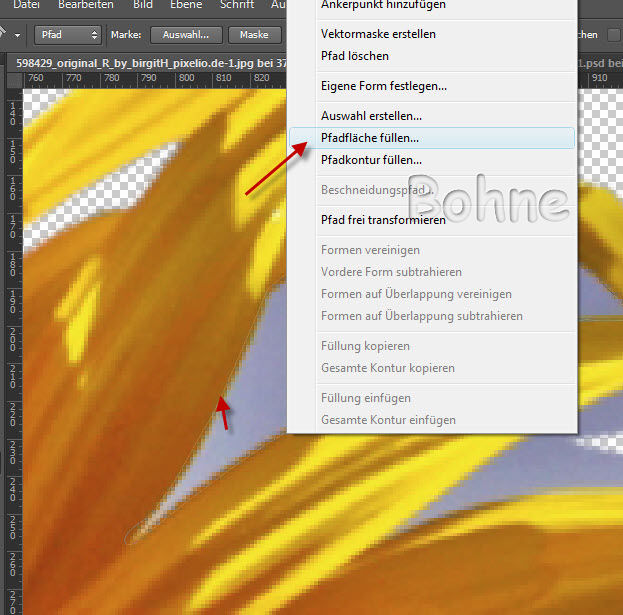 Gehe mit dem Zeichenstift-Werkzeug auf den Pfad und mit rechtem Mausklick auf „Pfadfläche füllen“