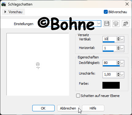 8) Effekte -> 3D Effekte -> Schlagschatten
