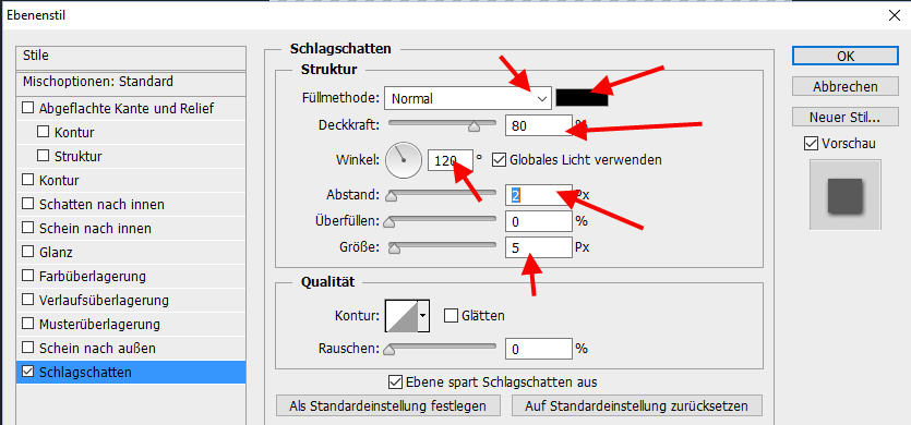 Ebenenstil hinzufügen Schlagschatten