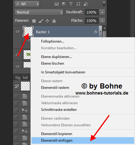 Rechter Mausklick auf die Ebene und "Ebenenstil einfügen"