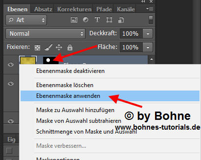 Rechter Mausklick auf die Ebenenmaske und "Ebenenmaske anwenden "