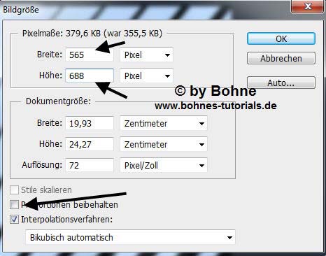 Bild -> Bildgröße -> schreibe dir hier die Größe auf