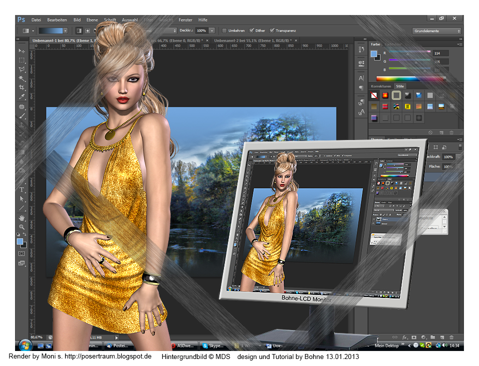 15) gehe wieder zu deinem Bild und füge den Monitor als neue Ebene ein