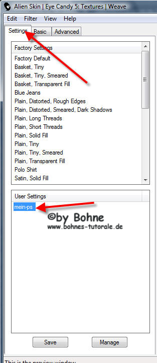 Mach einen doppelklick auf die Voreinstellung für den Filter Alien Skin Eye Candy 5 - Textures – Weave