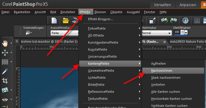 4) Effekte-> Kanteneffekt-> nachzeichnen