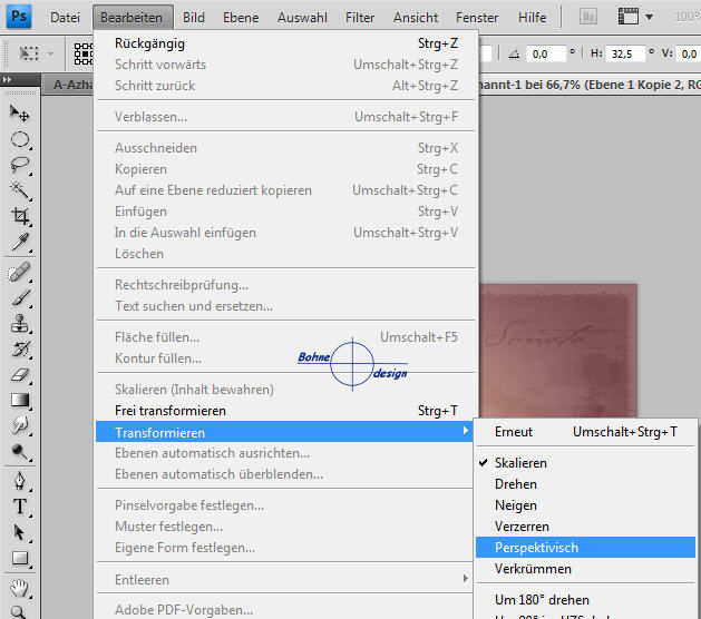 21) Bearbeiten-> Transformieren-> Perspektivisch