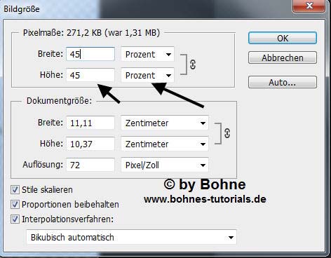 Bild -> Bildgröße -> Verkleinern auf 45%