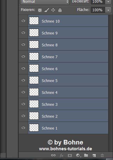 Schalte jetzt das Auge der Ebene "Schnee 3 " unsichtbar und das der Ebene "Scchnee 4" Sichtbar