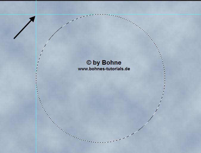 Klicke mit dem Auswahl-Kreuz an der Stelle wo sich die Hilfslinien kreuzen, siehe Bild